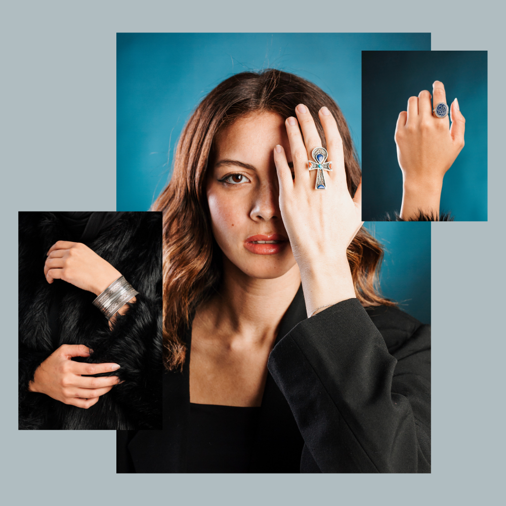 At Ajure, we create unique silver jewelry where heritage meets elegance. Inspired by Arabic and Pharaonic designs, our pieces blend history with modern style, making every piece special.